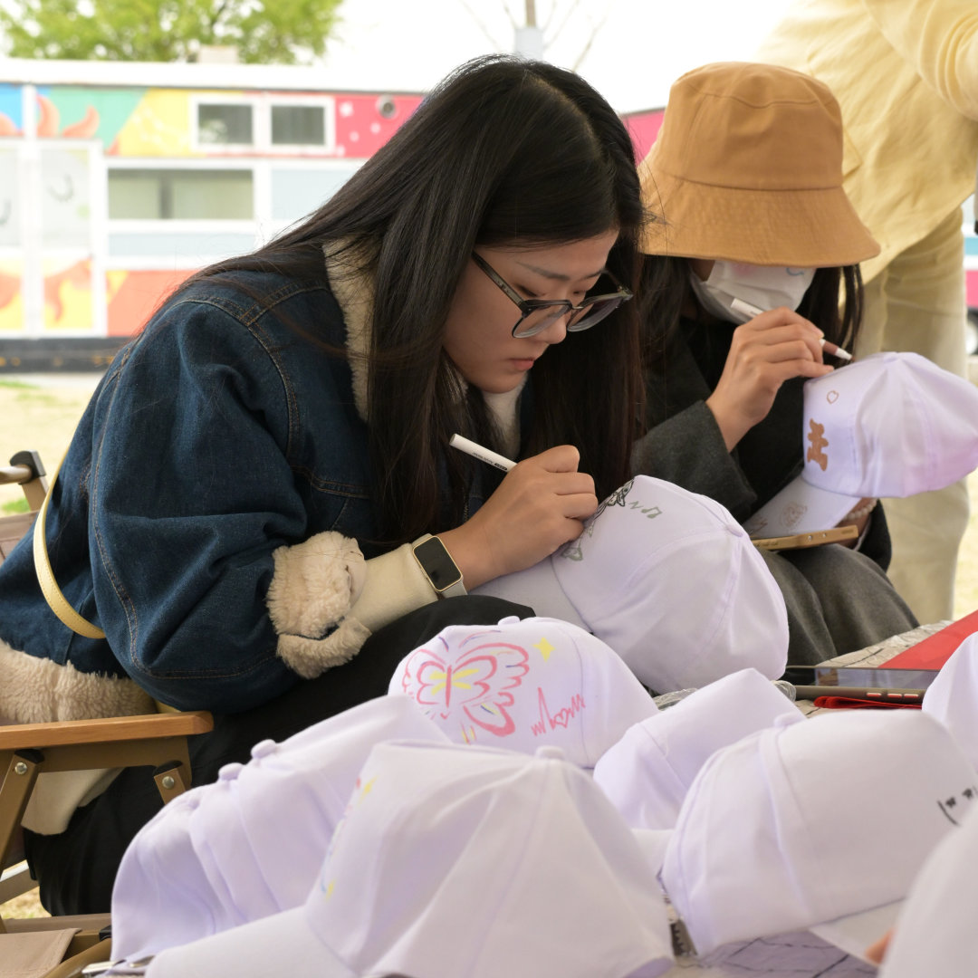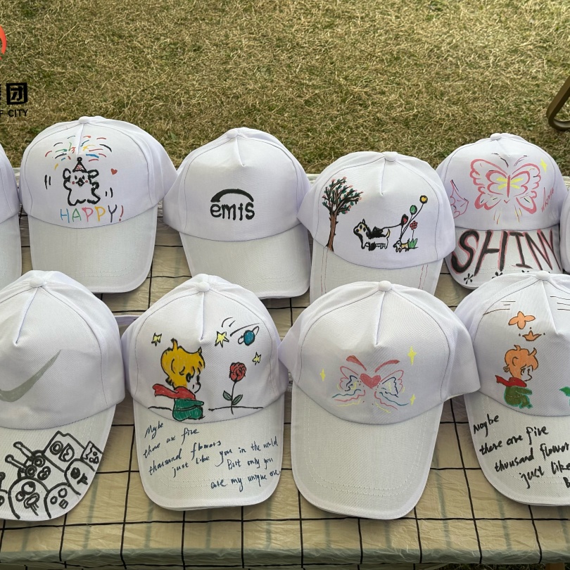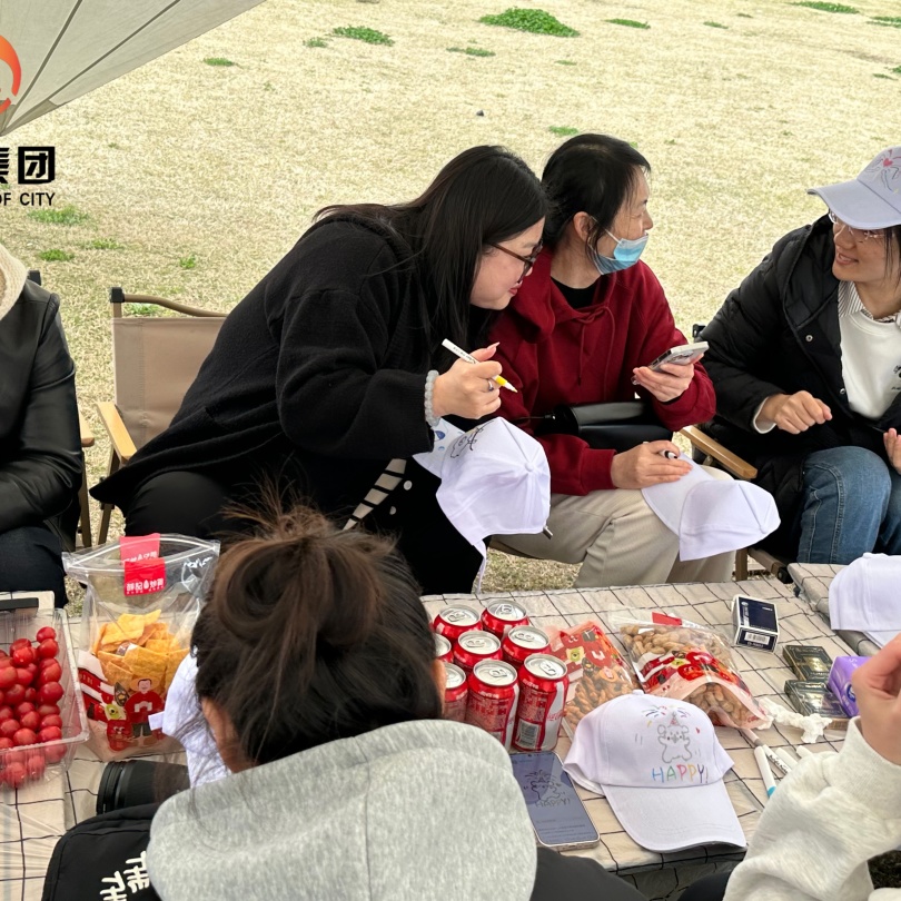 魚嘴濕地公園的柳浪聞鶯間,大家三五成群開啟午后時(shí)光。棋牌組在涼亭下運(yùn)籌帷幄、決勝千里;攝影組在江豚躍水的粼粼波光中尋找“江流天地外”之境;K歌組的歌聲在江畔回響;繪畫組在純色帆布帽上揮灑靈感,有人描繪小王子和玫瑰花的身影,有人在帽檐繪就“三山半落青天外”的意境畫,還有人將公司logo與長江波濤巧妙融合。