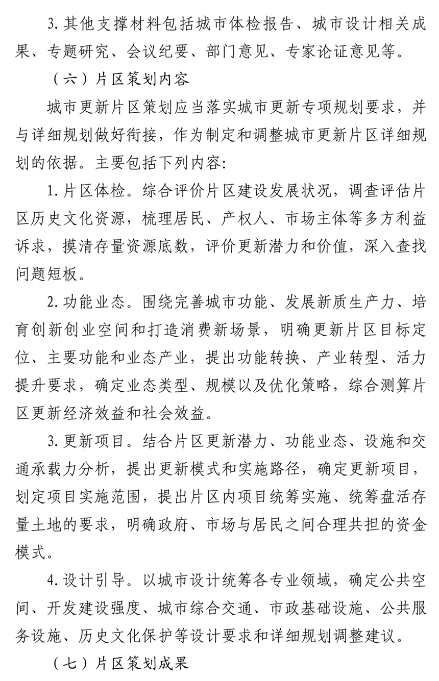 為深入貫徹中央城市工作會(huì)議精神,落實(shí)《中共中央辦公廳、國務(wù)院辦公廳關(guān)于持續(xù)推進(jìn)城市更新行動(dòng)的意見》,指導(dǎo)各地制定實(shí)施城市更新專項(xiàng)規(guī)劃,建立完善“專項(xiàng)規(guī)劃—片區(qū)策劃—項(xiàng)目實(shí)施方案”的規(guī)劃實(shí)施體系,住房城鄉(xiāng)建設(shè)部組織編制了《城市更新規(guī)劃編制導(dǎo)則》,要求結(jié)合實(shí)際做好城市更新規(guī)劃編制實(shí)施工作。