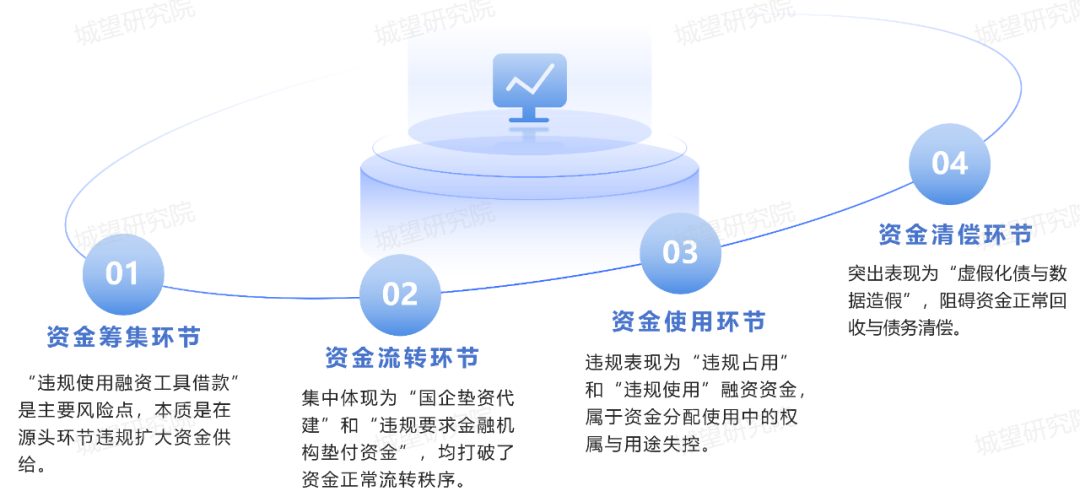 隱性債務(wù)違規(guī)行為的演變軌跡清晰可見:早期多以顯性違規(guī)為主,政府直接出具承諾函、擔(dān)保函等文件,為融資平臺(tái)或項(xiàng)目融資“背書”,此類行為形式較為直白;近期違規(guī)行為更趨隱蔽,新增隱性債務(wù)常通過財(cái)政補(bǔ)貼等隱蔽方式承諾還款,以及虛假項(xiàng)目包裝等方式,將政府償債責(zé)任隱藏在復(fù)雜交易結(jié)構(gòu)中。這種演變既反映監(jiān)管壓力下的違規(guī)行為異化,也為隱性債務(wù)治理帶來新的挑戰(zhàn)。一是發(fā)展訴求與財(cái)政約束的失衡。傳統(tǒng)的政績考核體系側(cè)重經(jīng)濟(jì)增長、項(xiàng)目建設(shè)等顯性指標(biāo),部分地方黨政干部為追求短期政績而忽視債務(wù)風(fēng)險(xiǎn)。并且在現(xiàn)有財(cái)政框架下,工業(yè)化與城鎮(zhèn)化加速推動(dòng)地方政府承擔(dān)大量基建、民生等剛性支出。地方政府既要履行公共服務(wù)職能,又缺乏可持續(xù)的融資渠道,最終發(fā)展沖動(dòng)突破了財(cái)政承受能力邊界。二是政企邊界與權(quán)責(zé)劃分的模糊。城投公司作為地方經(jīng)濟(jì)發(fā)展和城市建設(shè)的重要抓手,存在“政府點(diǎn)菜、企業(yè)買單”的錯(cuò)位。政府以行政指令將公益性項(xiàng)目交予城投,實(shí)質(zhì)是將政府責(zé)任轉(zhuǎn)嫁。這種邊界不清使得城投公司背離市場化主體屬性,淪為“財(cái)政的錢袋子”,既擾亂企業(yè)市場化經(jīng)營秩序,也成為隱性債務(wù)滋生的重要誘因。三是監(jiān)管效能與違規(guī)行為存在博弈。部分地區(qū)抱持“上有政策、下有對策”的僥幸心理,通過非規(guī)范文件為違規(guī)行為提供隱性支撐,試圖規(guī)避監(jiān)管約束。此類行為反映出監(jiān)管末梢效能仍有不足,政策執(zhí)行的“最后一公里”尚未完全打通,需進(jìn)一步強(qiáng)化全鏈條監(jiān)管的落地實(shí)效,筑牢隱性債務(wù)防控防線。03